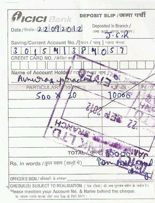 is erased a bit, & 500 x 20 in which X is above the Stamp line.... May Be that Transaction happned bt account does not belong to ANURAG PRADHAN it Belongs to _______ Chawla...!(Cant gv full name)
