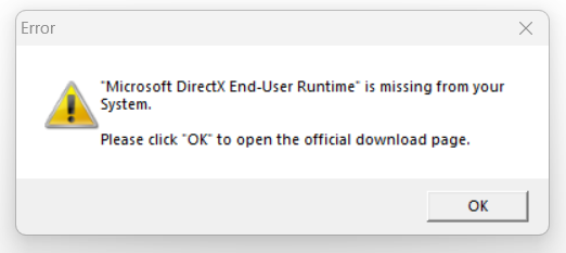 I am getting a message "Microsoft Directx End-User Runtime is missing from your system" when i try to start A3 after finishing client download.