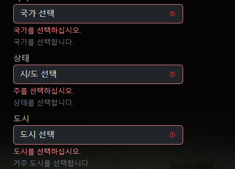 페이지를 한국어로 번역하지 않고 등록을 시도해 보세요. 대부분의 경우, 국가 및 도시 이름의 한글 표기가 지원되지 않으며 영어로 입력해야 할 가능성이 높습니다.